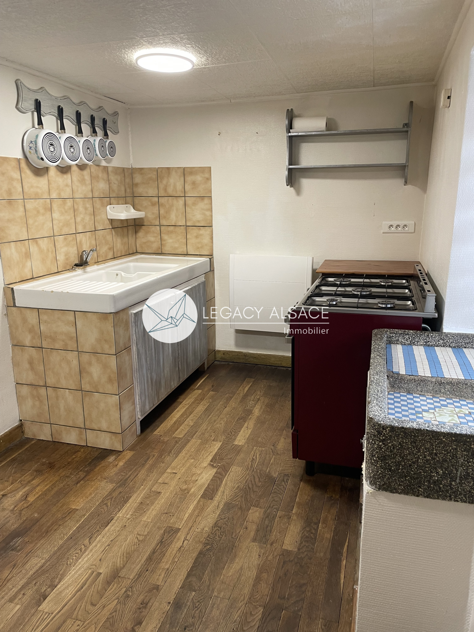 En première ligne: Maison alsacienne de 1803 qui comprend actuellement 60m² habitable et 65 m² à rénover sur les niveaux supérieurs.Cette maison se compose d'un séjour, d'une cuisine séparée, d'une salle de bain avec WC et d'une chambre. Chauffage électrique et au bois, DPE classé en G, vaste sous-sol isolé, travaux de couverture, de charpente et d'isolation à prévoir.