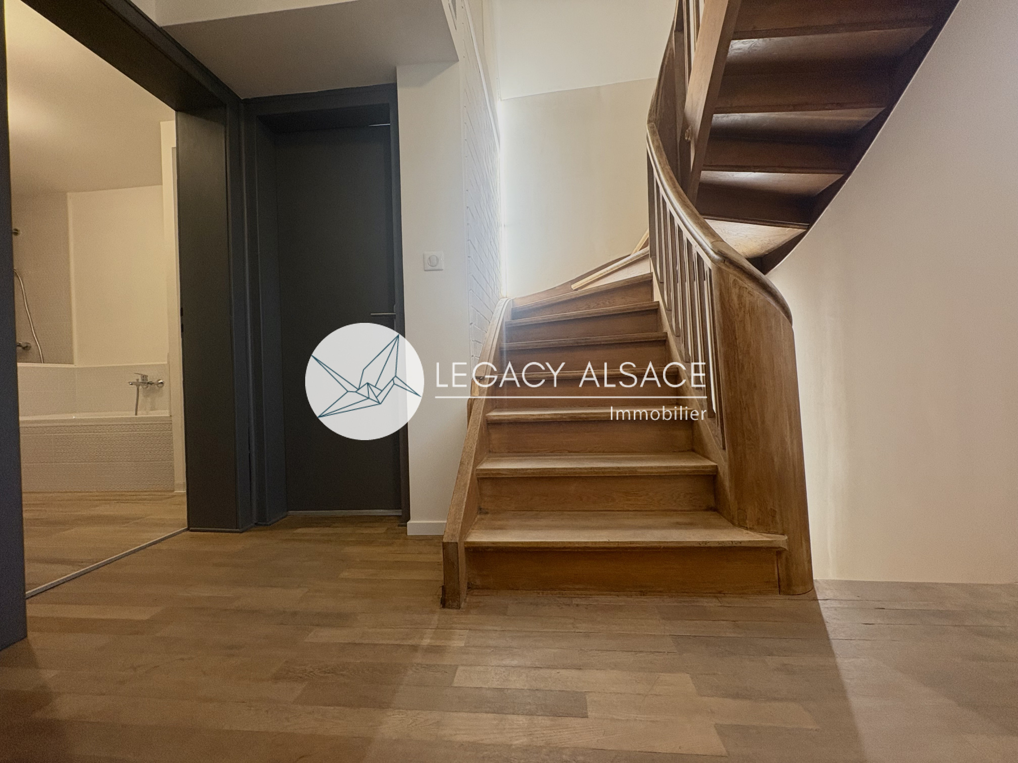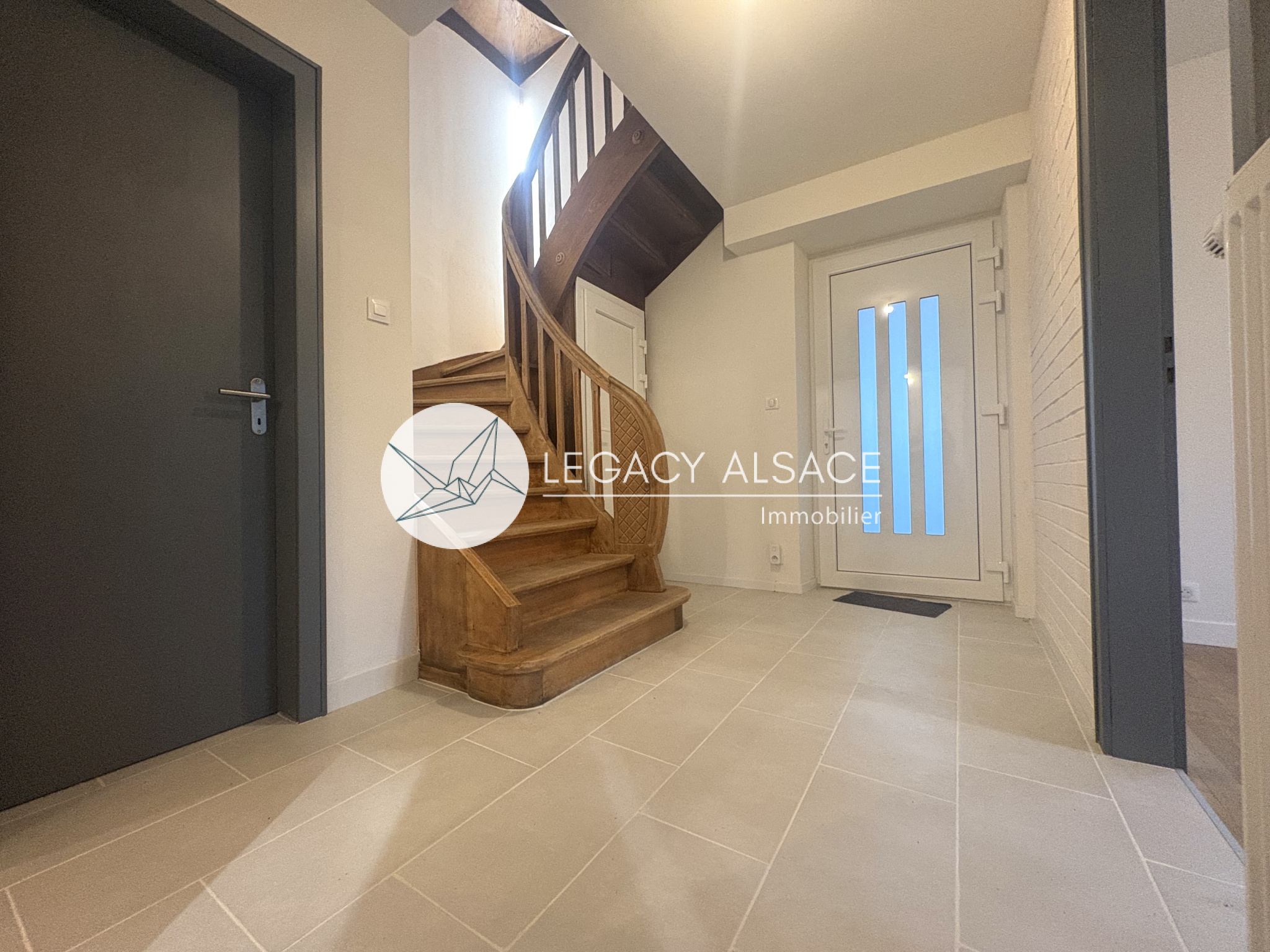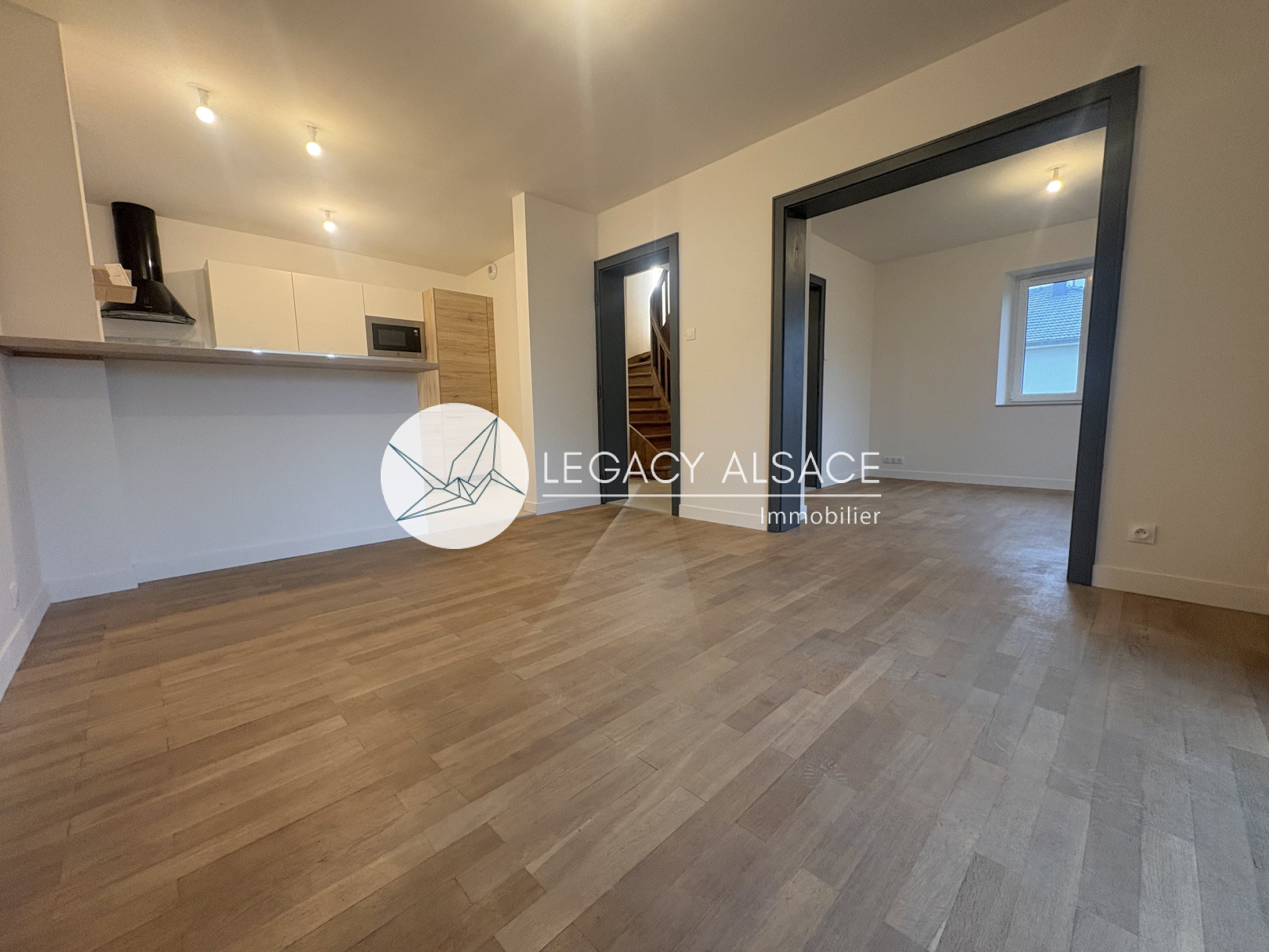 Mommenheim (67670)Une maison entièrement rénovée située à Mommenheim, à seulement 15 minutes de Strasbourg. Elle offre 121 m² sur trois niveaux. Dès l’entrée, vous trouverez un dégagement menant à l’étage et à la cave, ainsi qu’à un salon en enfilade avec la salle à manger et avec la cuisine. Un Wc séparé complète ce niveau. La cuisine est totalement équipée avec micro-ondes, réfrigérateur, plaque induction, four et hotte. Chaque pièce dispose de radiateurs et la production d’eau chaude est assurée par un chauffe-eau à ballon thermodynamique.