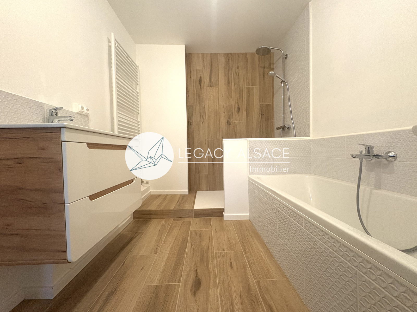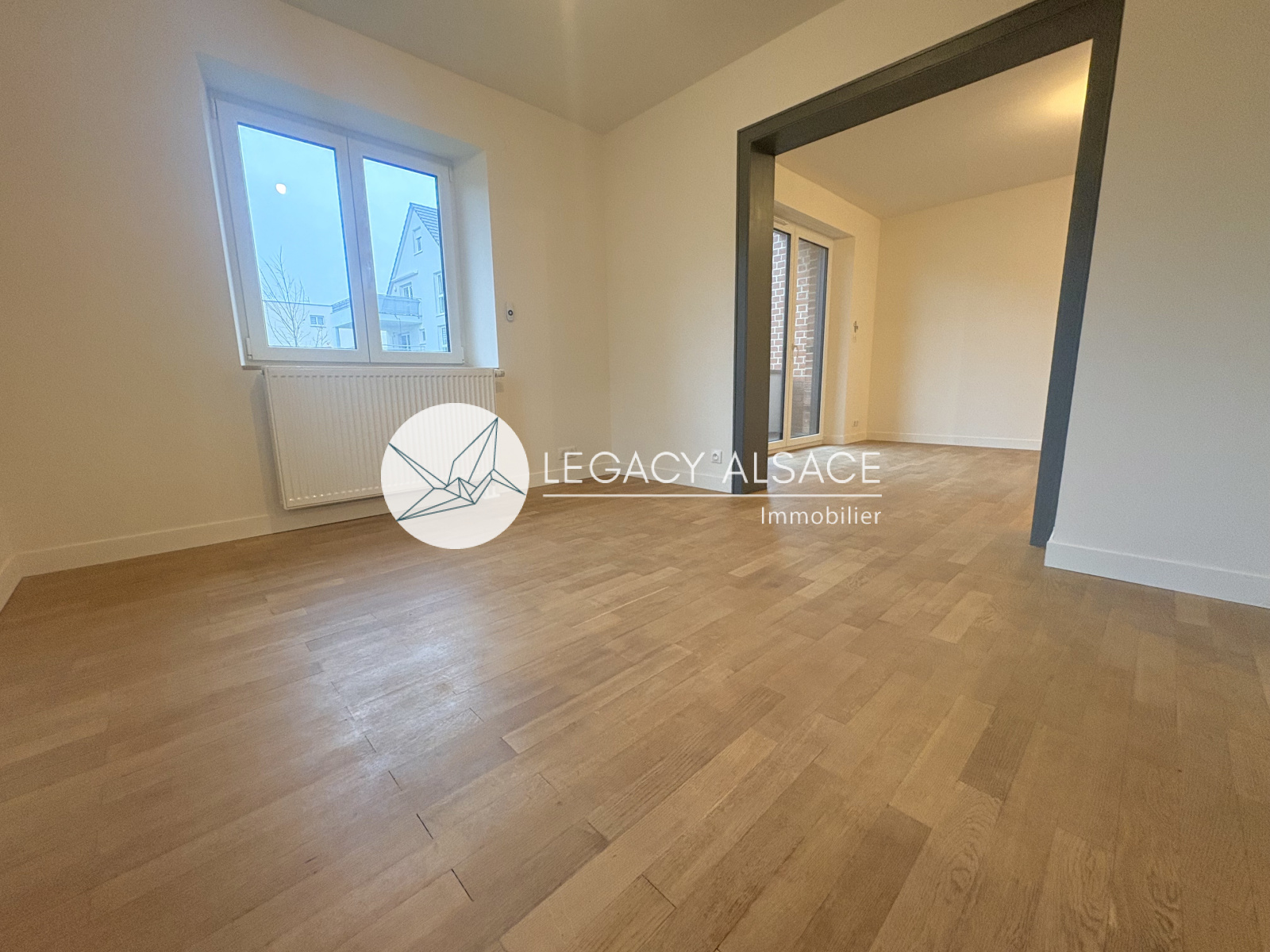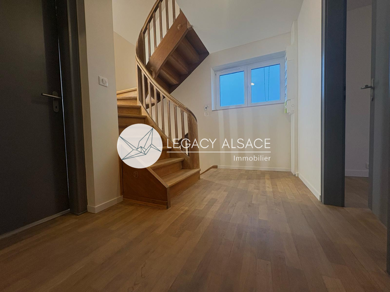 Mommenheim (67670)Une maison entièrement rénovée située à Mommenheim, à seulement 15 minutes de Strasbourg. Elle offre 121 m² sur trois niveaux. Dès l’entrée, vous trouverez un dégagement menant à l’étage et à la cave, ainsi qu’à un salon en enfilade avec la salle à manger et avec la cuisine. Un Wc séparé complète ce niveau. La cuisine est totalement équipée avec micro-ondes, réfrigérateur, plaque induction, four et hotte. Chaque pièce dispose de radiateurs et la production d’eau chaude est assurée par un chauffe-eau à ballon thermodynamique.