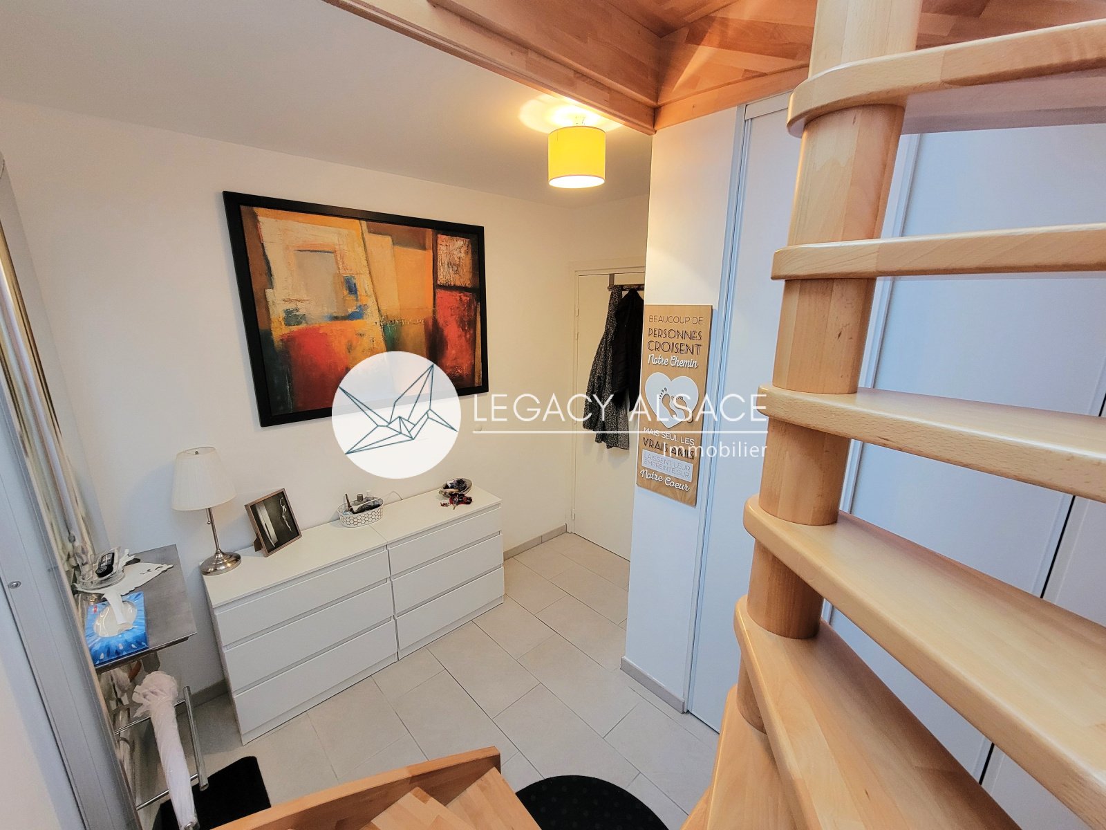 L’appartement se développe sur deux niveaux, offrant un agencement rare et élégant.