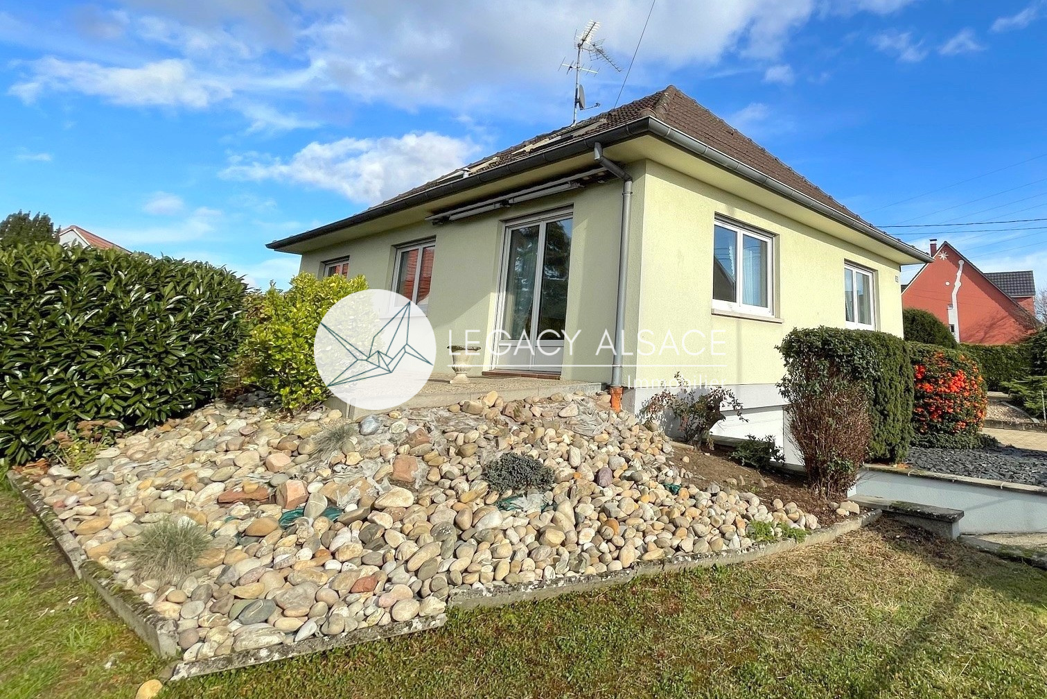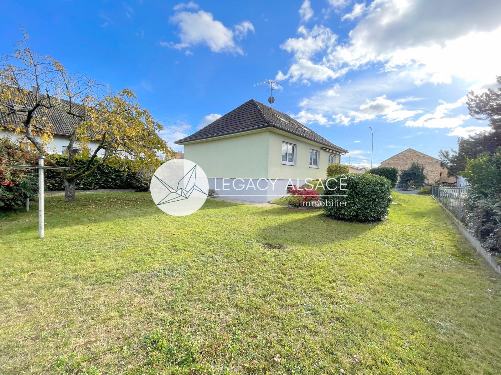 Haguenau (67500)Maison individuelle familiale (1976), 5 pièces (120m2 environ), sous-sol complet, avec une terrasse, une cour et un jardin arboré (5,79 ares).