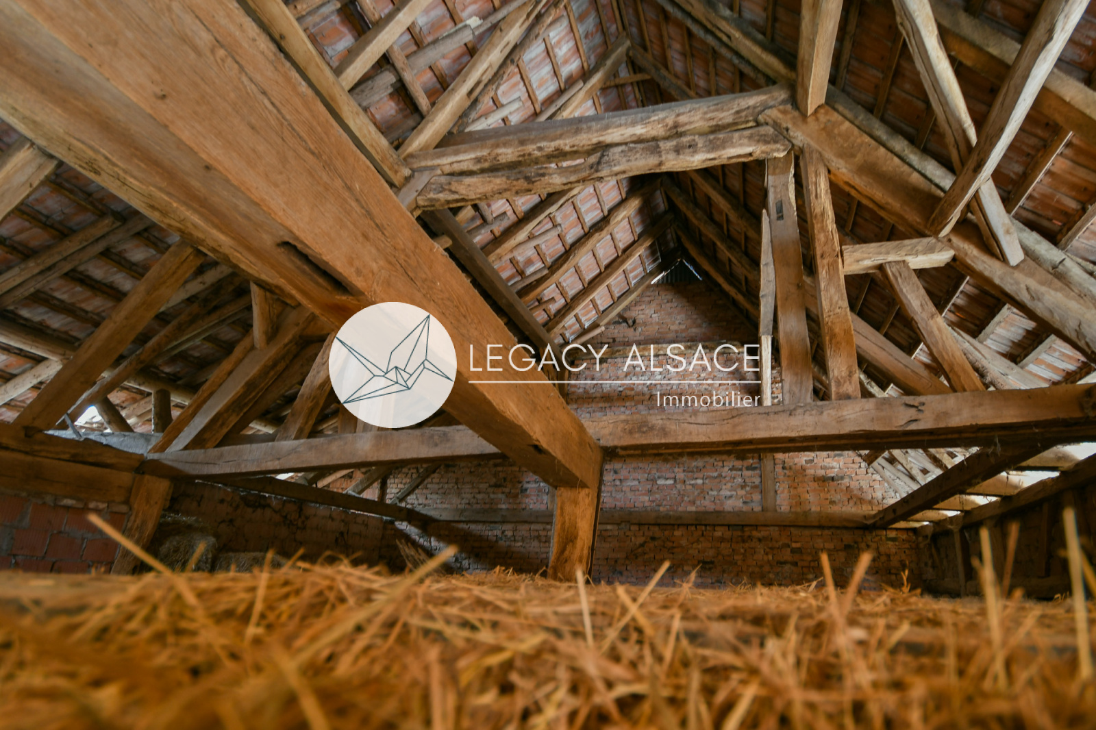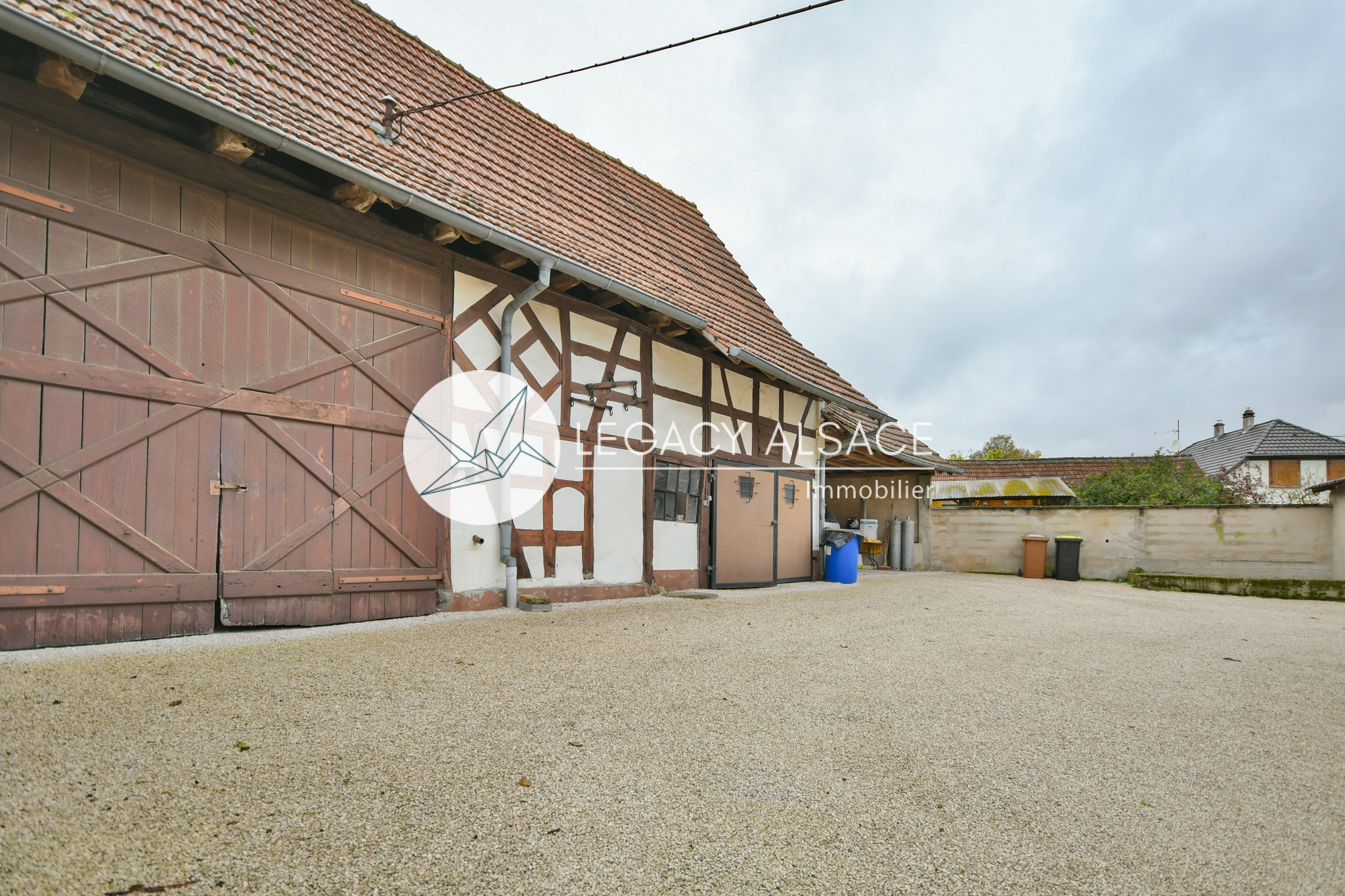 un double garage actuellement aménagé en atelier de menuisier, des combles aménageables, ainsi qu’une belle grange alsacienne pleine de charme.